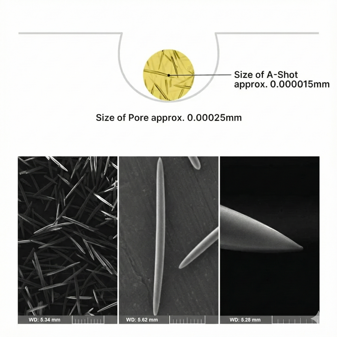 A refined micro-particle ingredient, 16 times thinner than pores, is designed to penetrate directly into pores and enhance the absorption of active ingredients. Through high-purity separation and refinement, the particles are uniformly sized, reducing skin irritation.