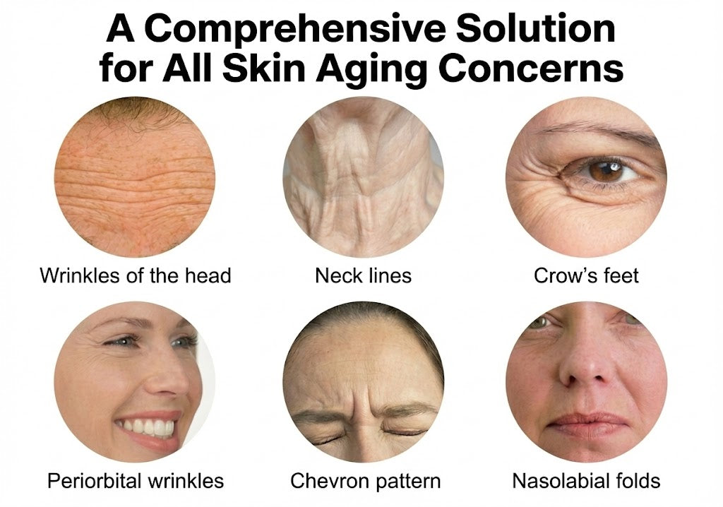 As we age, collagen, hyaluronic acid and ceramides gradually decrease, especially after the age of 25. This decrease can lead to wrinkles, dryness, uneven skin tone and loss of elasticity. Eyelid and facial muscles also relax, and neck wrinkles become more pronounced, accelerating the aging process.