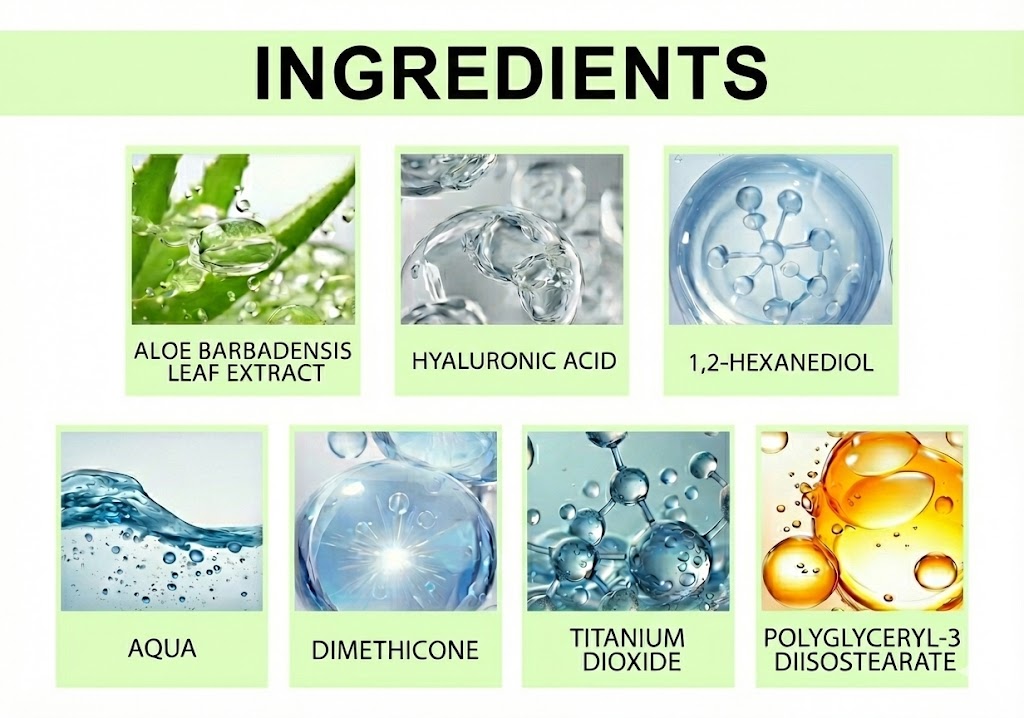 Water, Butylene Glycol, Glycerin, Caprylic/Capric Triglyceride, Cetearyl Alcohol, Niacinamide, Diisostearyl Malate, 1,2-Hexanediol, Polypropylsilsesquioxane, Panthenol, Cetearyl Olivate, Cetearyl Glucoside, Sorbitan Olivate, Hydroxyethyl Acrylate/Sodium Acryloyldimethyl Taurate Copolymer, Lecithin, Carbomer, Arginine, Dimethicone/Vinyl Dimethicone Crosspolymer, Tocopherol, Retinal, Xanthan Gum, Ethylhexylglycerin, Adenosine, Sorbitan Isostearate, Sodium Lactate, Hydrolyzed Sponge, Disodium EDTA, Polysorbate 20, Ascorbic Acid, Glucose, Palmitoyl Tripeptide-1, Palmitoyl Tetrapeptide-7